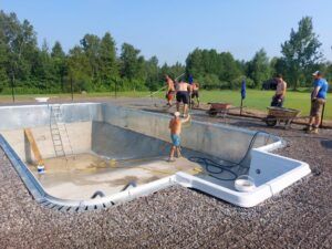 Grout being added over top of rough bottom to finish off the pool floor with an extra smooth finish.